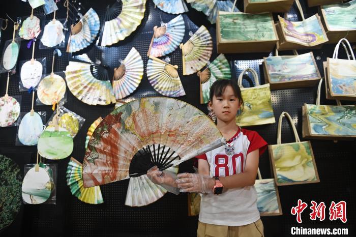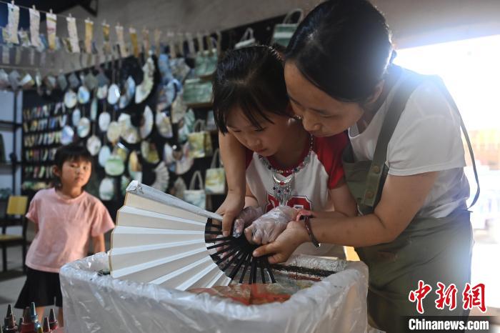 8月20日,甘肅敦煌莫高里工匠村內(nèi),學(xué)員展示研學(xué)成果。工匠村開設(shè)了泥板畫、彩繪、雕塑制作、剪紙、農(nóng)耕體驗(yàn)等課程,現(xiàn)已發(fā)展成為一個(gè)集敦煌文化講堂、壁畫書法研習(xí)、美術(shù)設(shè)計(jì)、彩塑制作教學(xué)、篆刻藝術(shù)、傳統(tǒng)釀酒體驗(yàn)、農(nóng)業(yè)產(chǎn)業(yè)發(fā)展等于一體的多功能實(shí)訓(xùn)基地。中新社記者 李亞龍 攝