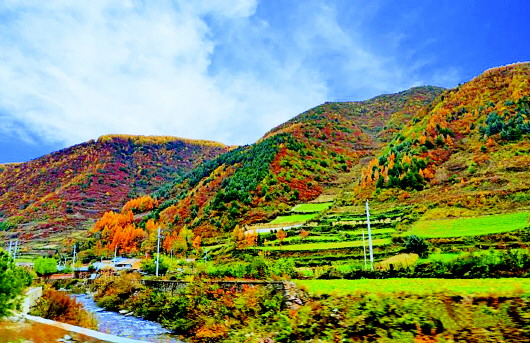 秋日的渭川大地,以非凡的姿態(tài)喚醒最美的山川河流,繪就一幅又一幅的秋日七彩山水畫卷。秋景中的龍臺鎮(zhèn),就是畫卷中最美的詩和遠方。秋葉隨風(fēng)搖曳,村落掩映群林,溪水潺潺遠去,炊煙裊裊升起。在馬年云梯之上遙望太皇山巍峨雄壯,重巒疊嶂。由深紅、金黃、橙紅、翠綠交織在一起的秋日勝景,與藍天白云相映成趣,顯得壯麗無比。