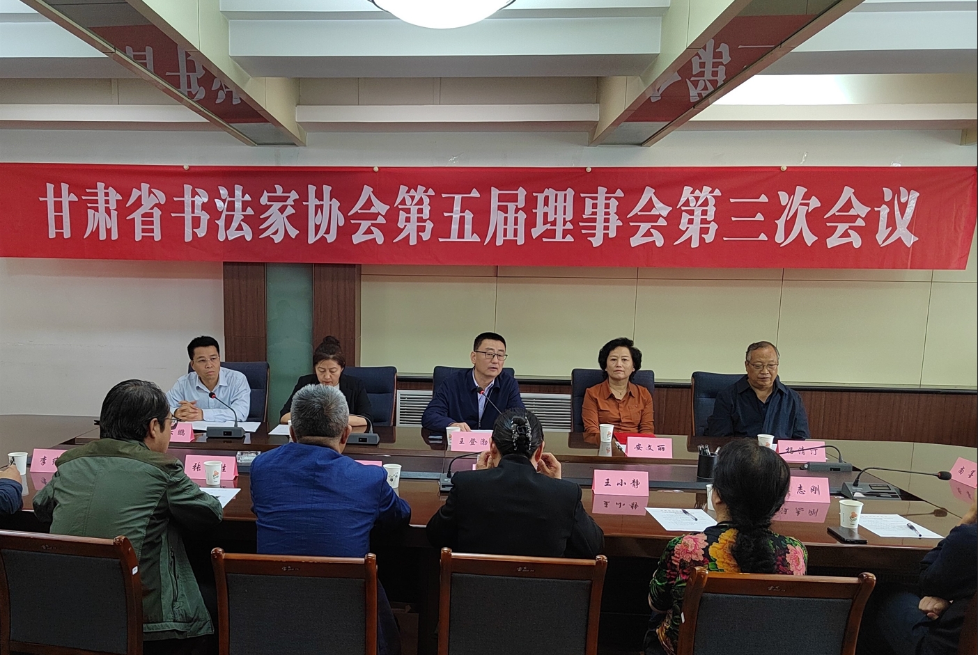 2024年9月13日下午,甘肅省書法家協(xié)會(huì)第五屆理事會(huì)第三次會(huì)議在蘭州召開。省文聯(lián)黨組書記、主席王登渤出席會(huì)議并講話,省文聯(lián)人事處處長楊東英、省書協(xié)五屆理事會(huì)理事參會(huì)。會(huì)議由省書協(xié)常務(wù)副主席劉云鵬主持。