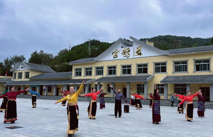 在官鵝溝大景區(qū),伴隨著當(dāng)?shù)卦瓌?chuàng)旅游歌曲《娥嫚》的旋律,游客們和身著民族服飾的表演者在山水之間載歌載舞,現(xiàn)場不時響起陣陣掌聲和歡呼聲。“如詩如畫的美景,獨具魅力的民族文化,歌舞聲把節(jié)日氣氛拉滿。”周敏說。