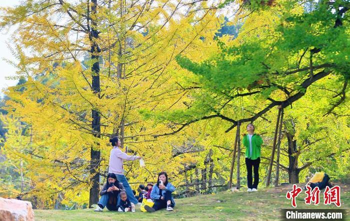 中新網(wǎng)蘭州10月28日電(高展)“霜降”過后銀杏黃。秋陽(yáng)映照下,甘肅隴南市徽縣嘉陵鎮(zhèn)田河村宛如披上絢麗新裝,詩(shī)意夢(mèng)幻。此地四周青山環(huán)抱,嘉陵江如靈動(dòng)絲帶蜿蜒流淌,水豐土腴、氣候溫潤(rùn),為銀杏營(yíng)造絕佳生長(zhǎng)環(huán)境?;湛h委副書記、縣長(zhǎng)王福全稱,銀杏,不僅承載著千年的歷史沉淀,更以其獨(dú)特的風(fēng)姿和韻味,成為徽縣一張亮麗的名片。