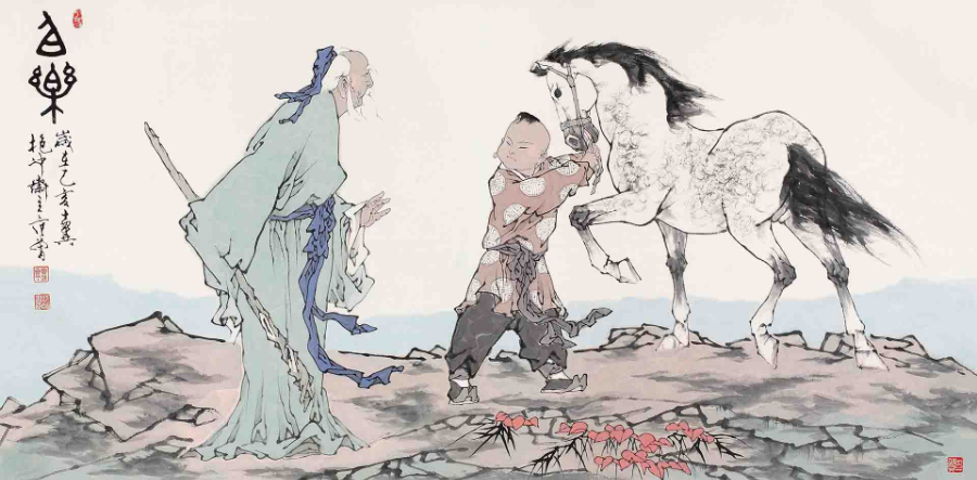 范曾 國畫作品《伯樂圖》。