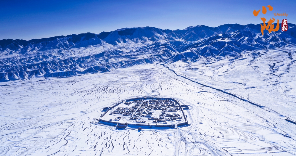 陽光照耀著古城墻,閃爍著淡淡的金光。羊群回歸古城,在白雪覆蓋的戈壁灘留下了串串蹄印,生命的希望就在潔凈的雪中孕育。