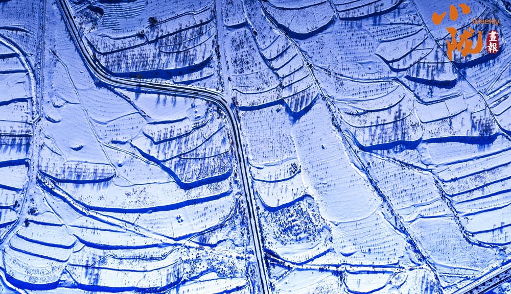 蜿蜒的黃河猶如一條藍(lán)絲帶飄舞在白雪覆蓋的山間、田野,兩岸被雪裝扮得格外壯麗,從空中俯瞰,宛若一幅水墨丹青畫。