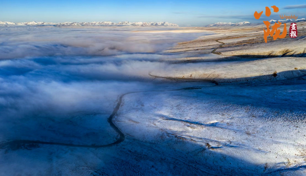 祁連山下,被譽(yù)為“空中草原”的康樂草原段披上了銀裝,皓然一色,如詩如畫。