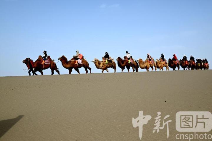 2025年3月2日,游客在甘肅省敦煌市鳴沙山月牙泉景區(qū)游覽。從3月1日開(kāi)始,至3月31日,甘肅省敦煌市鳴沙山月牙泉景區(qū)、世界文化遺產(chǎn)玉門(mén)關(guān)遺址、敦煌雅丹世界地質(zhì)公園三大市屬景區(qū)推出門(mén)票半價(jià)優(yōu)惠政策,吸引游客走進(jìn)敦煌,欣賞大漠風(fēng)光,體驗(yàn)絲路風(fēng)情。中新社發(fā) 張曉亮 攝