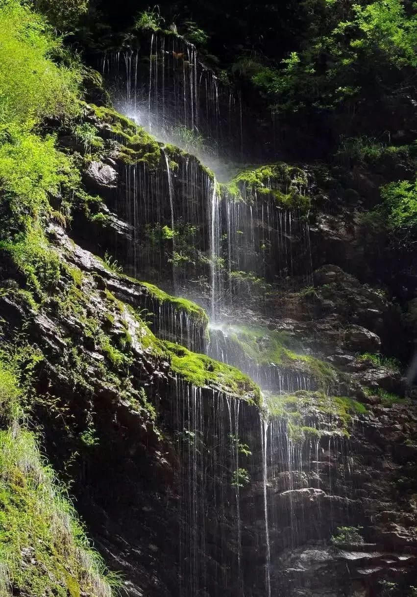 這些瀑布有的如白練懸空,一瀉千里;有的如珠簾垂掛,水霧彌漫。水流從懸崖頂端飛瀉而下,發(fā)出震耳欲聾的轟鳴聲,仿佛是大自然奏響的雄渾樂(lè)章。站在瀑布之下,水汽撲面而來(lái),讓人感受到一種磅礴的氣勢(shì)和生命的律動(dòng)。