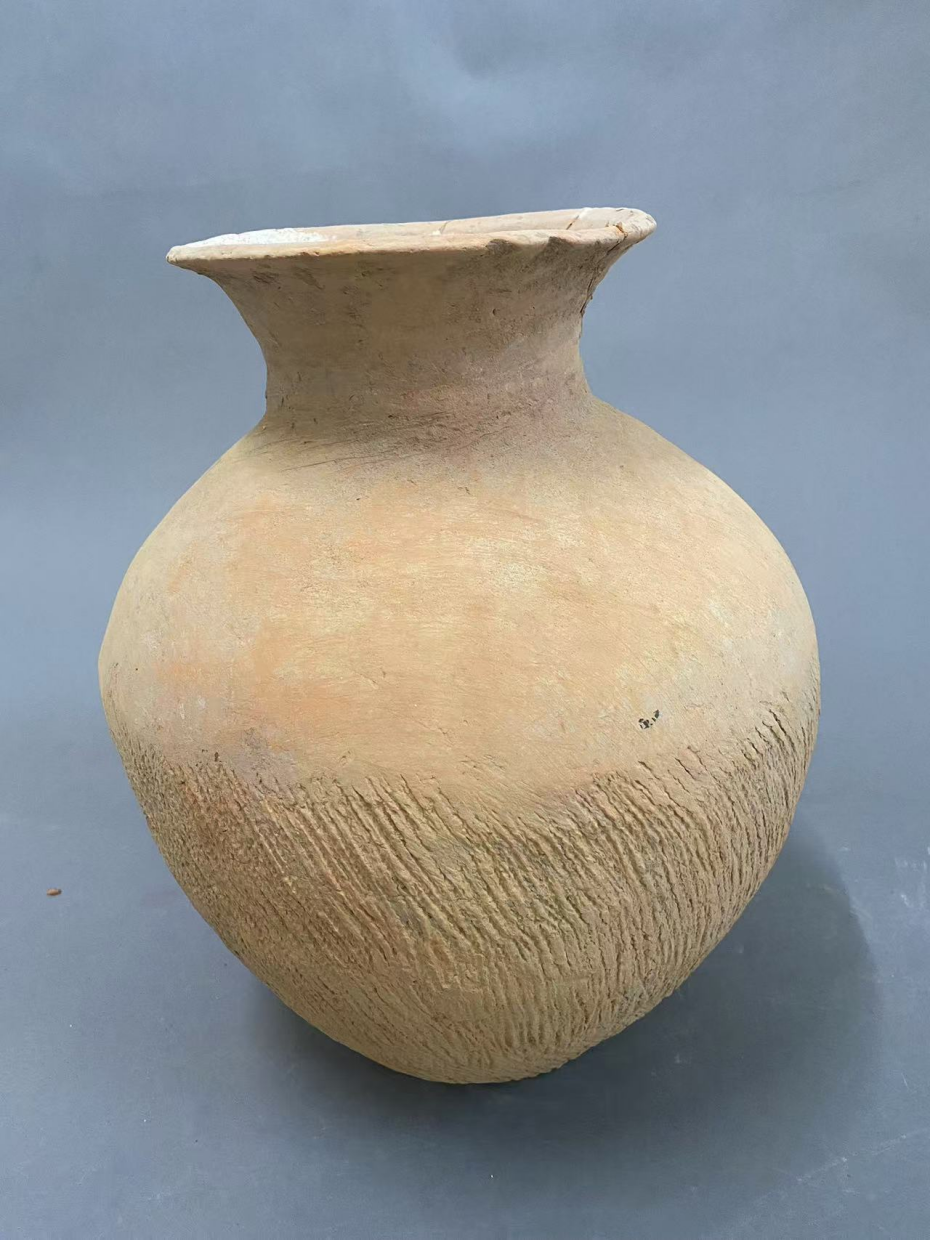 繩紋鼓腹紅陶罐(鎮(zhèn)原縣博物館藏)