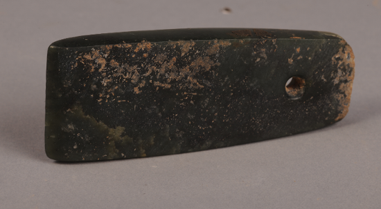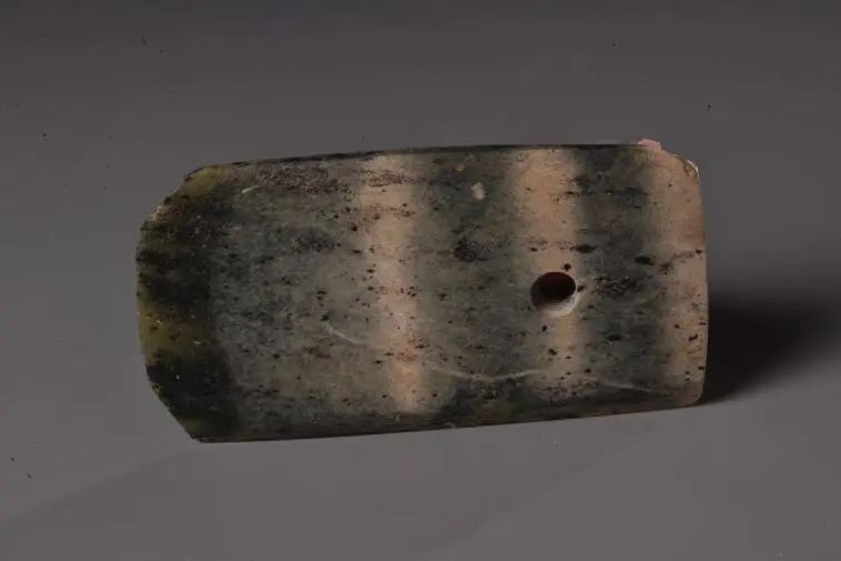 出土單孔玉斧(慶陽(yáng)市博物館藏)
