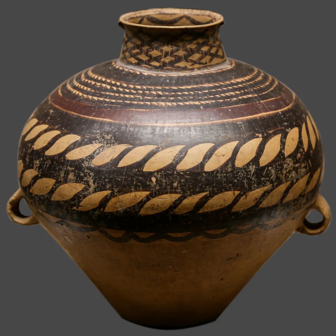 馬家窯文化如黃河上游的基因庫,約公元前3300年萌芽于甘肅定西臨洮,承仰韶文化西進(jìn)之火種,以洮河為血脈、黃土為肌理,在旋轉(zhuǎn)的陶輪間淬煉出黑彩翻涌的史前藝術(shù)密碼,成為西北大地孕育新石器文明的第一縷熾熱胎動。