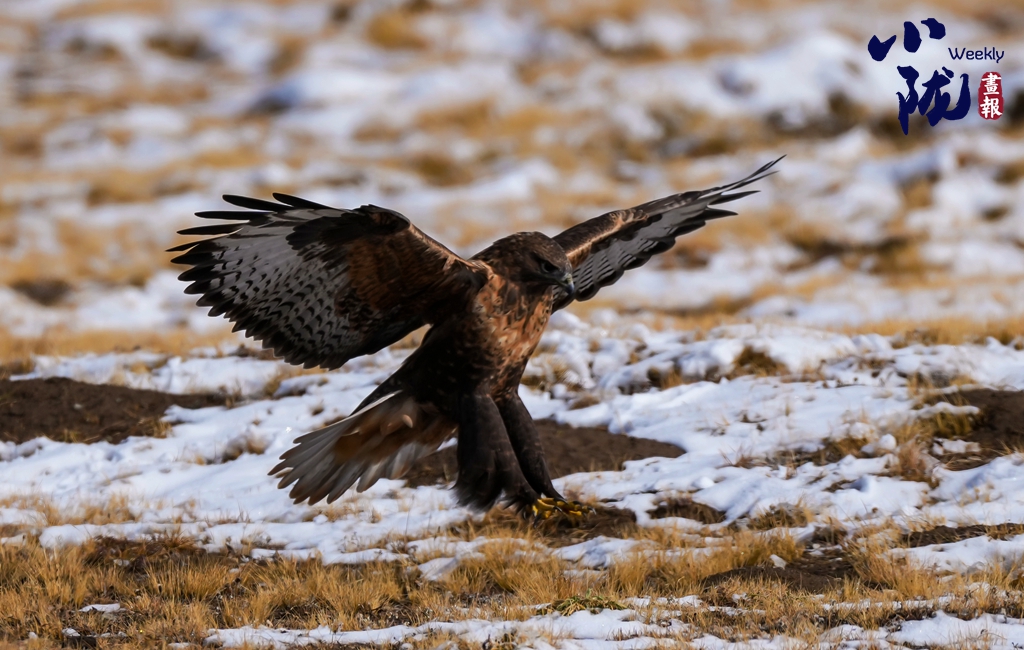 草原雕是國(guó)家一級(jí)重點(diǎn)保護(hù)野生動(dòng)物,別名草原鷹。外貌兇悍、體形碩大的黃棕色雕,不同年齡階段及不同個(gè)體之間體色差異較大。喙灰色,腳黃色。飛行時(shí)兩翼平直,展開(kāi)長(zhǎng)度可達(dá)200cm,滑翔時(shí)兩翼略彎曲,尾有時(shí)呈形。由于張掖境內(nèi)生態(tài)環(huán)境持續(xù)改善,草原雕已逐漸成為肅南的越冬候鳥(niǎo),每年11月底到次年4月初,在肅南濕地就能見(jiàn)到它的身影。