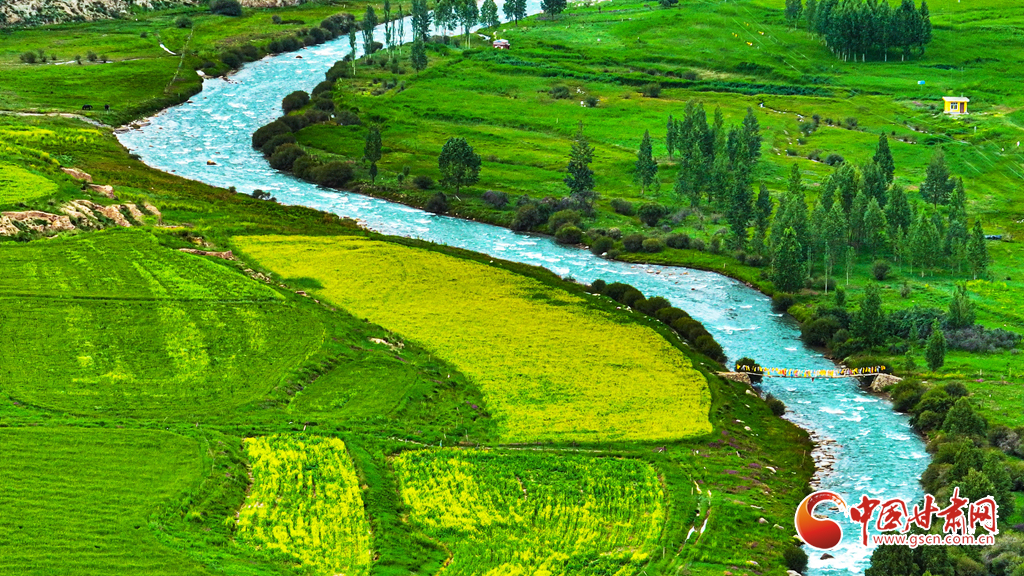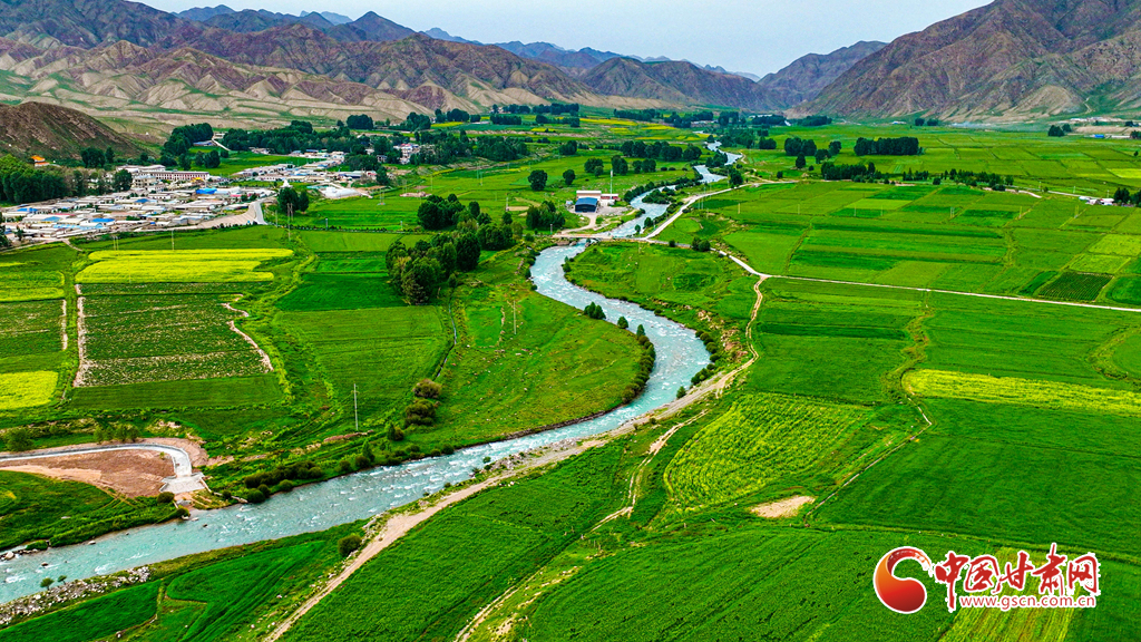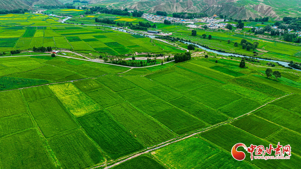 7月14日,一場(chǎng)小雨過后,張掖市肅南裕固族自治縣皇城鎮(zhèn)泱翔片區(qū),萬畝麥田泛黃、油菜花盛開如金。微風(fēng)吹拂,麥浪翻涌花香浮動(dòng)。遠(yuǎn)眺祁連山巍峨聳立,近觀民居錯(cuò)落有致,構(gòu)成一幅和諧的畫卷。