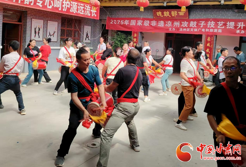 中國甘肅網(wǎng)7月19日訊(西北角·中國甘肅網(wǎng)記者 張振國 文/圖)為扎實推進國家級非物質(zhì)文化遺產(chǎn)項目傳承與保護,系統(tǒng)提升涼州攻鼓子團隊專業(yè)水平,發(fā)展壯大攻鼓子傳承人隊伍。7月16日,由涼州區(qū)文體廣電和旅游局主辦、涼州區(qū)文化館承辦的2025年涼州攻鼓子傳承人技藝提升培訓(xùn)班分別在“涼州攻鼓子傳習(xí)所”和“四壩鎮(zhèn)非遺民俗文化館”開班。
