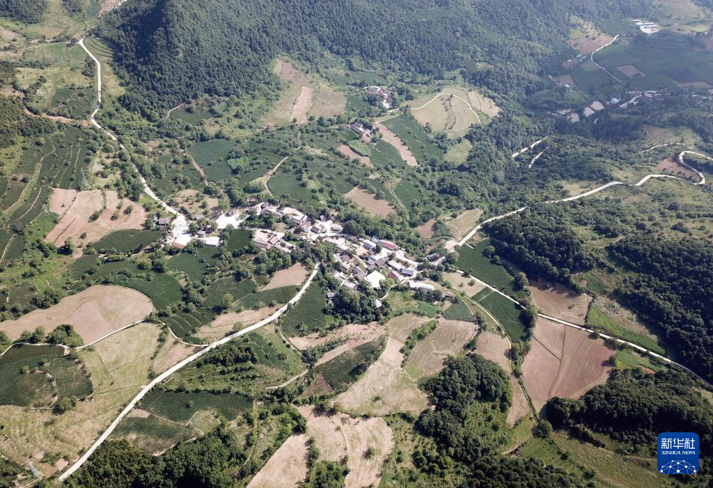 7月14日拍攝的青泥嶺腳下的青泥村(無人機照片)。新華社記者 陳斌 攝