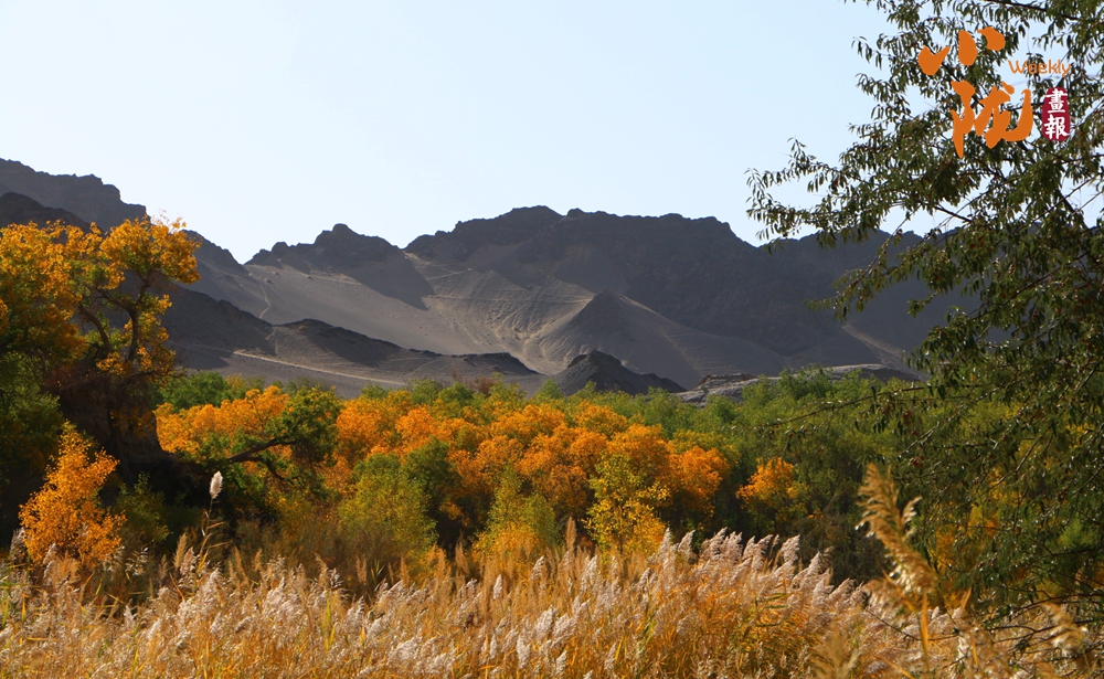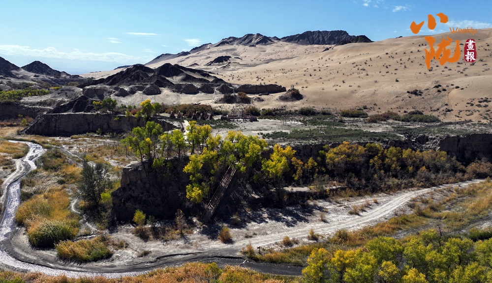 這里山勢(shì)奇特,因溝深線長(zhǎng),猶如峽谷,溝邊自生許多胡楊,被稱為“胡楊峽”。你看,溝邊沙山林立,千年胡楊挺拔,溝內(nèi)溪水清澈纏綿,天然的紅柳、蘆葦、梭梭、沙棗樹等植被錯(cuò)落有致,共同繪就了一幅秋日畫卷。