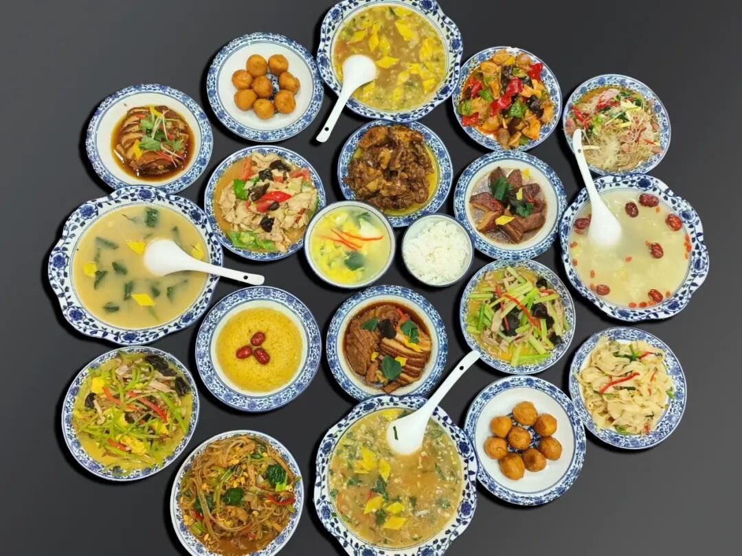 ——所有食材均來自農(nóng)家田園、綠色土產(chǎn),葷素、熱涼、湯菜搭配合理,營養(yǎng)豐富。