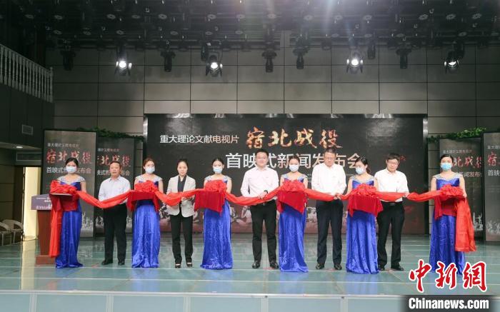 中新網(wǎng)宿遷4月23日電 (劉林 錢進(jìn))23日上午,紀(jì)錄片《宿北戰(zhàn)役》首映式新聞發(fā)布會(huì)在北京的中央廣播電視總臺(tái)農(nóng)業(yè)電影電視中心舉行,同時(shí)在江蘇省宿遷市宿豫區(qū)電視臺(tái)設(shè)立分會(huì)場(chǎng)。