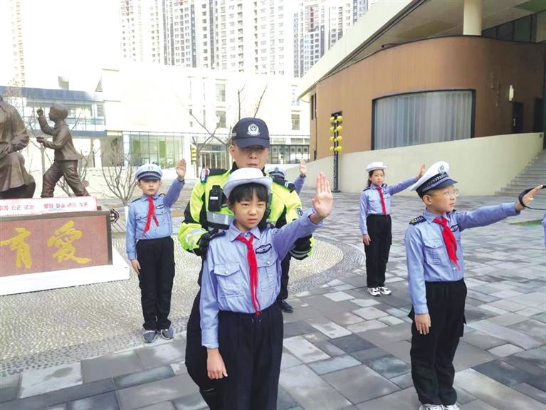 原標(biāo)題:交警課間進(jìn)校園 教孩子們交通手勢(shì)操