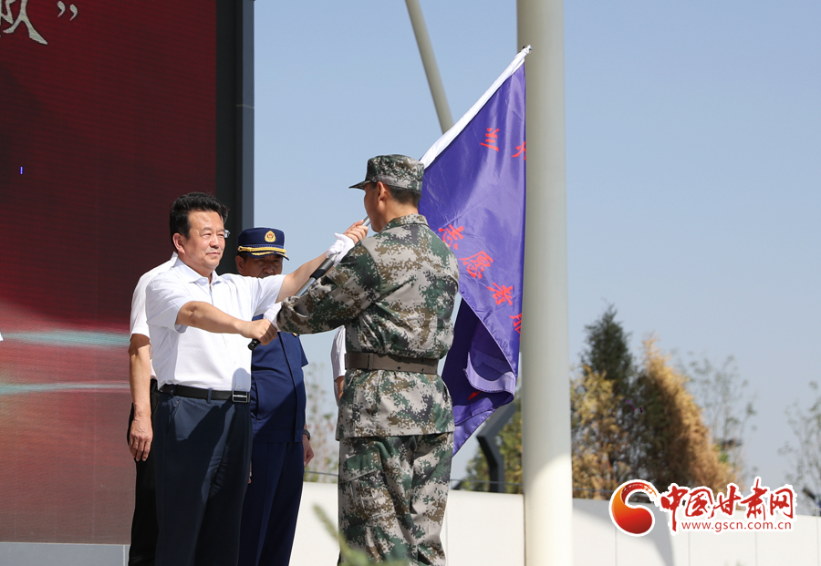 市委常委、政法委書記魏晉文同志為蘭州高新區(qū)“退役軍人志愿者服務(wù)隊(duì)”授旗