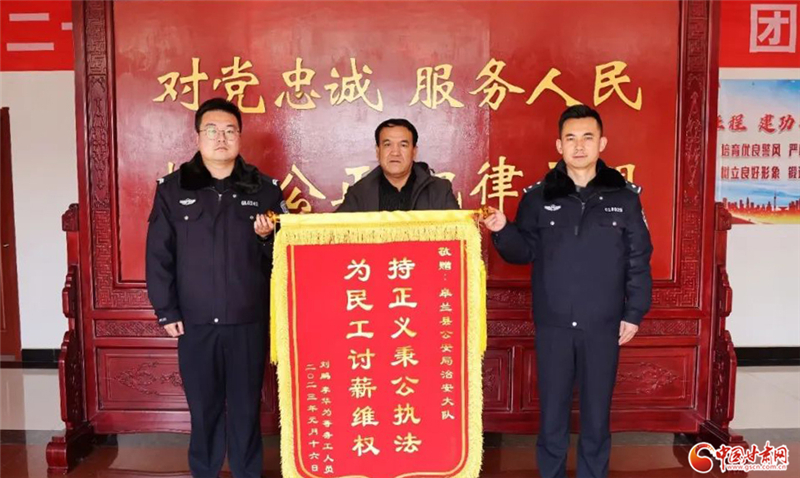 中國甘肅網2月3日訊(本網記者 程?。?月2日,劉先生代表20余名工友將一面印有“持正義秉公執(zhí)法,為民工討薪維權”的鮮紅錦旗送到了蘭州市皋蘭縣公安局,以此表達對縣局治安管理大隊民警幫其辛苦討要工資的感謝。
