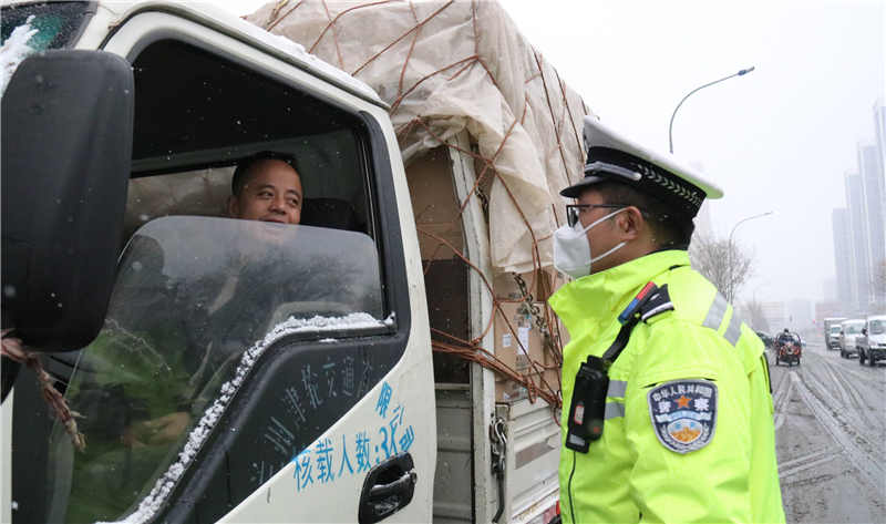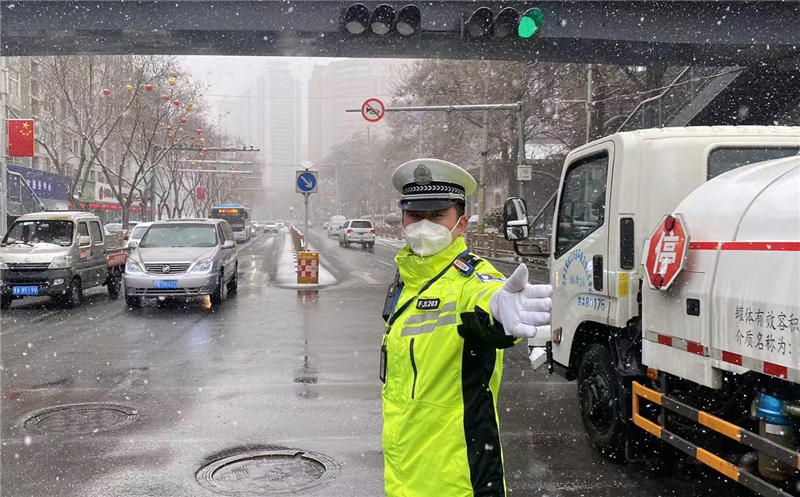大隊(duì)領(lǐng)導(dǎo)實(shí)地查看道路通行情況,及時調(diào)整勤務(wù)模式和警力部署,確保降雪天氣各項(xiàng)安全“防控”措施落實(shí)到位。民輔警全員上路,強(qiáng)化重點(diǎn)路段巡邏管控和主要路口值守,對不具備通行條件車輛進(jìn)行勸返或提示繞行。通過鳴笛、喊話、閃爍警燈等措施,提醒駕駛員裝配防滑鏈,減緩車速、保持安全車距、注意觀察路面通行情況,引導(dǎo)車輛和行人安全有序通行。