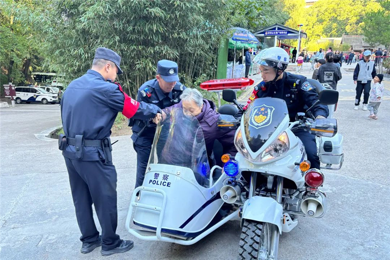 10月2日,一名陜西渭南游客向麥積山大景區(qū)派出所求助說,其母親由于年紀(jì)較大,已經(jīng)走不動了,需下山前往酒店休息,希望民警幫忙聯(lián)系車輛。隨后,旅游警察用警用摩托車送老人下山,安全到達山下停車場。