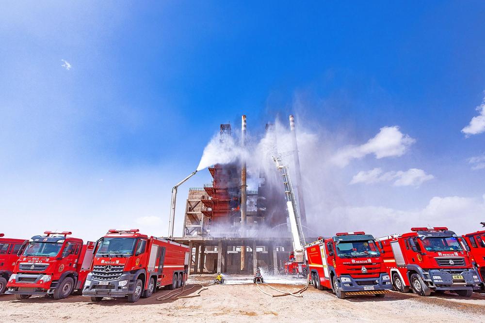 在“次生災害滅火救援”科目現場,化工園區(qū)內的熊熊烈焰映紅了半邊天。消防員身著隔熱服操控滅火機器人抵近火源,高噴車噴射出的泡沫如瀑布般覆蓋燃燒裝置,移動炮陣列織就立體火網。從突破火線到追殲火頭,從清理余火到看守火場,救援人員輪替堅守在一線,成功阻止火勢的蔓延。