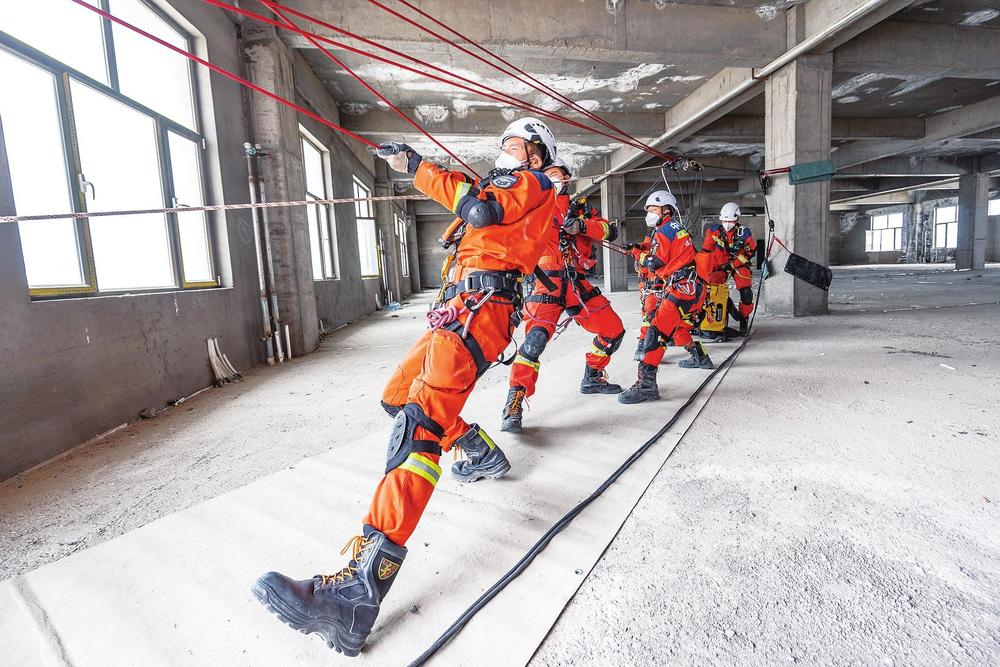 演練現場設置在民樂縣一處廢棄廠區(qū),精心搭建的模擬廢墟區(qū)真實還原了地震后的慘烈場景:斷裂的預制板下壓著被困者,傾倒的鋼架阻斷逃生路徑,熊熊燃燒的化工廠冒出濃煙……12個高難度救援科目輪番上演,每一處細節(jié)都直擊地震救援的核心挑戰(zhàn)。