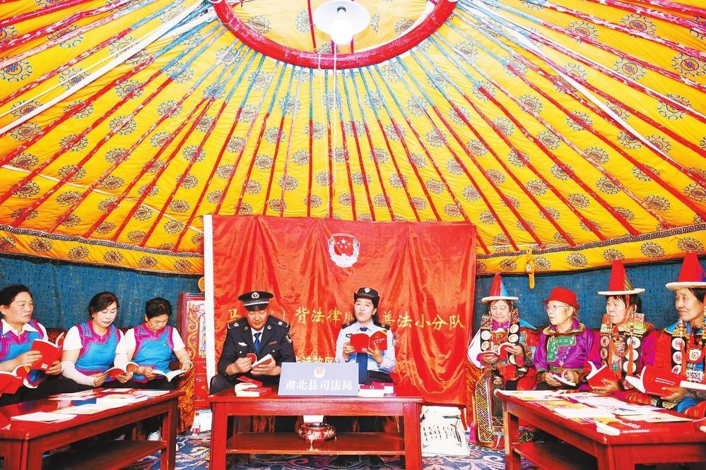 將民族工作納入共建共治共享的社會(huì)治理格局,打造特色亮點(diǎn)品牌,創(chuàng)新基層治理模式,提高依法行政水平。深入推進(jìn)民族地區(qū)主動(dòng)創(chuàng)安主動(dòng)創(chuàng)穩(wěn),堅(jiān)持和發(fā)展新時(shí)代“楓橋經(jīng)驗(yàn)”,常態(tài)化開展矛盾糾紛大排查大化解行動(dòng),有效化解涉民族因素的矛盾糾紛。指導(dǎo)甘肅省法官學(xué)院開展民族地區(qū)“主動(dòng)創(chuàng)穩(wěn)以法治思維方式鑄牢中華民族共同體意識(shí)”法治宣傳教育活動(dòng),通過“法律八進(jìn)”等方式,在民族地區(qū)弘揚(yáng)憲法精神。各地創(chuàng)新推出“奶茶議事會(huì)”“雙語(yǔ)警務(wù)”“花兒普法”等具有民族特色的基層治理新模式,讓普法宣傳“接地氣”,法治觀念“入民心”。