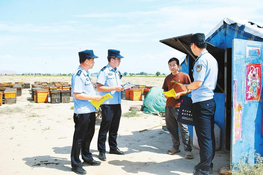 民警走進(jìn)蜂場宣傳安全知識(shí)。新甘肅·甘肅法治報(bào)通訊員王承棟攝