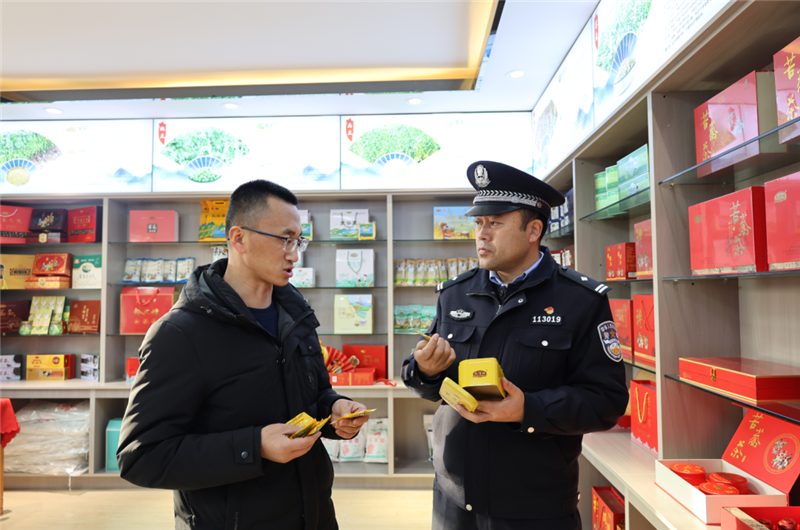 ▲通渭縣公安局經(jīng)偵大隊(duì)民警深入轄區(qū)食品公司,開(kāi)展普法宣傳和風(fēng)險(xiǎn)隱患排查活動(dòng)。(孛金鵬 攝)