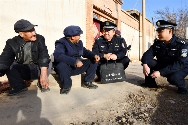 ▲臨澤縣公安局沙河派出所民輔警深入轄區(qū)村莊開(kāi)展冬季用火、用電安全檢查,同時(shí)向群眾宣傳冬季生爐取暖的安全防范常識(shí)。(安學(xué)海 攝)