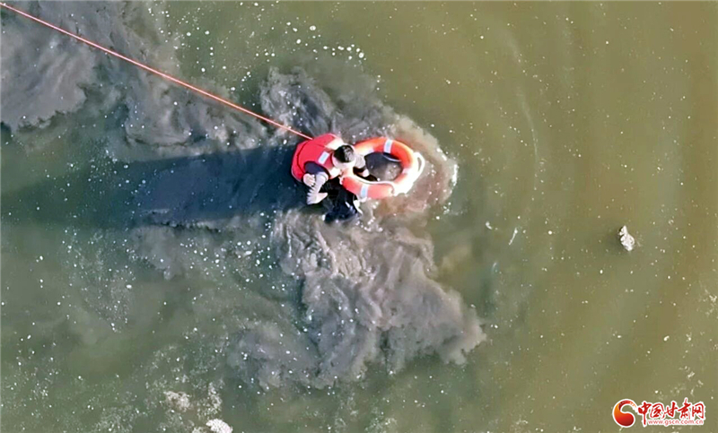 在無人機(jī)的精準(zhǔn)指引下,吳謹(jǐn)帆以最快的直線距離接近目標(biāo),其余警力則在岸上緊拽著連接吳謹(jǐn)帆的救生繩。