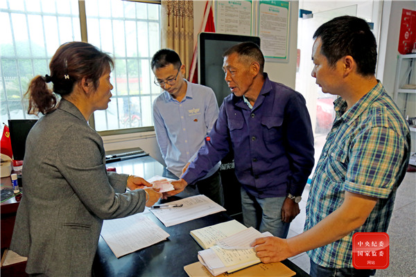 湖南省益陽市資陽區(qū)長(zhǎng)春鎮(zhèn)幸福村村級(jí)義務(wù)監(jiān)督員主動(dòng)履職,全程參與并監(jiān)督發(fā)放產(chǎn)業(yè)扶貧分紅資金,確保每一筆民生資金落到實(shí)處。(湖南省益陽市資陽區(qū)紀(jì)委監(jiān)委 張偉敏 攝)