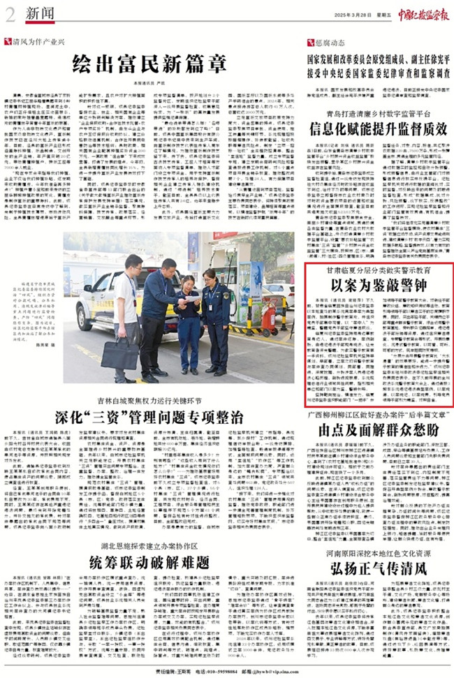堅持靶向施治、精準發(fā)力。臨夏州紀委監(jiān)委組織職能部門“一把手”參加領導干部警示教育大會、對新任干部廉政談話、廉政知識測試等活動,教育引導領導干部以廉潔實干的態(tài)度履職盡責。同時,突出年輕干部、關鍵崗位干部等重點群體警示教育,綜合運用警示教育基地、旁聽職務犯罪庭審、違紀違法干部懺悔等資源,通過組織廉潔課堂、專題警示教育會等形式,開展場景化、沉浸式警示教育,以可看、可聽、可感的方式,筑牢拒腐防變堤壩。