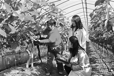 江蘇省東臺市紀委監(jiān)委開展護航農(nóng)村特色產(chǎn)業(yè)發(fā)展專項監(jiān)督,深入查糾鄉(xiāng)村振興項目資金監(jiān)管和涉農(nóng)補貼發(fā)放等方面存在的問題。圖為該市紀委監(jiān)委工作人員在葡萄種植大棚走訪了解相關情況。王茜 攝