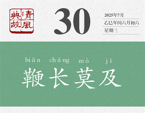 先古語(yǔ),后民諺,伯宗的一番高能輸出,晉景公全無(wú)招架之功,只好打消了出兵救宋的念頭。“雖鞭之長(zhǎng),不及馬腹”的意思是,鞭子再長(zhǎng),也不能打在馬肚子上。不是因?yàn)楸拮佑|及不到馬肚子,而是因?yàn)轳R肚子不是鞭子該打的地方。后世則以“鞭長(zhǎng)莫及”為典,說(shuō)明鞭子雖然長(zhǎng),但還是打不到想打的地方,比喻因?yàn)榫嚯x太遠(yuǎn),而無(wú)能為力,或者因?yàn)閷?shí)力不足,不能想得太遠(yuǎn)。
