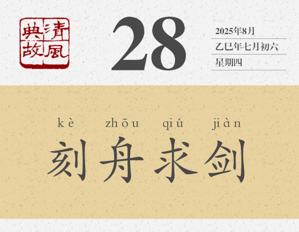 東西遺失了,沒有找回來,雖然很遺憾,但并沒有人覺得可笑。楚人劍掉到了江里,同樣沒有找到劍,但為什么我們不覺得遺憾,反而覺得可笑呢?那個(gè)人的劍掉到江里了,那個(gè)人的腦子是不是也掉到江里了呢?后人即以“刻舟求劍”為典,比喻墨守成規(guī),不知變通,處理事情的方法、解決問題的辦法不能隨著形勢(shì)的變化而變化,不能隨著事物的發(fā)展而發(fā)展。也用來形容事過境遷,追悔莫及。南宋高僧宗杲《頌古》其四十曰:“出門握手話分?jǐn)y,古路迢迢去莫追。卻笑波心遺劍者,區(qū)區(qū)空記刻舟時(shí)。”黃庭堅(jiān)詩(shī)《追憶余泊舟西江事次韻》:“老大無機(jī)如漢陰,白鳥不去相知深。往事刻舟求墜劍,懷人揮淚著亡簪。”其中的“空記刻舟時(shí)”“刻舟求墜劍”,都是對(duì)“刻舟求劍”的化用。