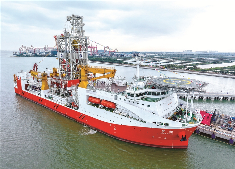 “十四五”時期,我國持續(xù)加強關(guān)鍵核心技術(shù)攻關(guān)和成果應(yīng)用,加快高端裝備、先進(jìn)制造等領(lǐng)域關(guān)鍵技術(shù)攻關(guān),推動傳統(tǒng)產(chǎn)業(yè)向高端化、智能化、綠色化轉(zhuǎn)型。圖為擁有最大11000米的鉆深能力、我國自主設(shè)計建造的首艘大洋鉆探船“夢想”號,該船于“十四五”時期正式入列(資料圖片)。新華社記者 劉大偉 攝