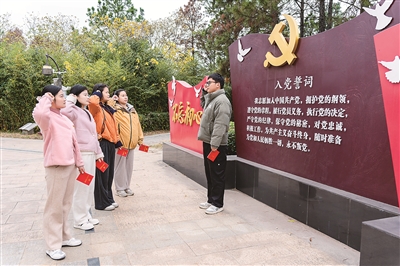 12月2日,江蘇省南京市溧水區(qū)紀(jì)委監(jiān)委組織部分青年黨員干部進(jìn)行黨章學(xué)習(xí)。圖為青年黨員干部在重溫入黨誓詞。劉勝君 攝