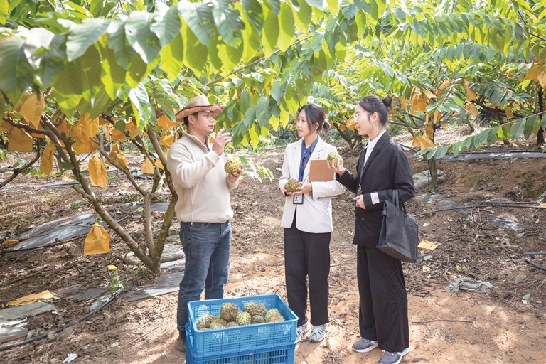 廣東省四會市紀(jì)委監(jiān)委把“百千萬工程”作為政治監(jiān)督的“頭號工程”來抓,圍繞產(chǎn)業(yè)發(fā)展、土地資金要素保障、干部作風(fēng)等開展精準(zhǔn)監(jiān)督。圖為近日,該市紀(jì)委監(jiān)委干部到逕口鎮(zhèn)釋迦果種植基地走訪了解有關(guān)情況。胡源 攝