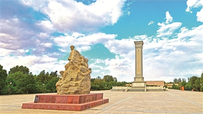 “血戰(zhàn)高臺”英雄群雕和中國工農(nóng)紅軍西路軍烈士紀念碑。鄭耀德 攝