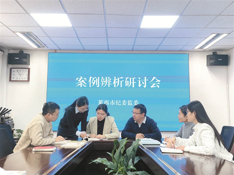 山東省萊西市紀(jì)委監(jiān)委將“鄉(xiāng)案縣審”作為提升基層案件質(zhì)量的重要抓手,堅(jiān)持建強(qiáng)機(jī)制、規(guī)范流程、強(qiáng)化培訓(xùn)共同發(fā)力,推動基層案件查辦工作提質(zhì)增效。圖為近日,該市紀(jì)委監(jiān)委組織開展案例辨析研討會。劉濤 攝