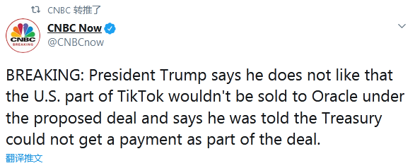 【環(huán)球網(wǎng)快訊】據(jù)CNBC剛剛消息,美國總統(tǒng)特朗普在16日的白宮新聞記者會上稱,他不喜歡目前甲骨文與TikTok目前擬定的合作協(xié)議,原因是TikTok的美國業(yè)務(wù)不會出售給甲骨文,而且他還被告知,美國財政部將無法從這次交易中拿到補(bǔ)償。