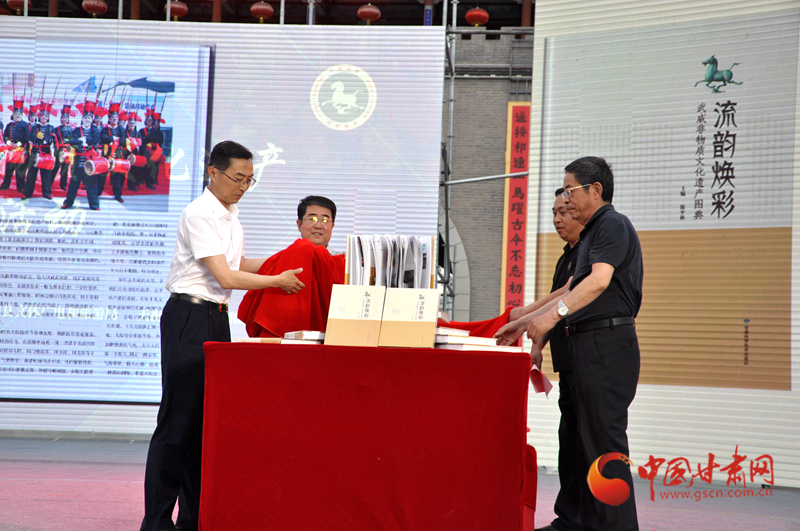 活動(dòng)中,《流韻煥彩——武威非物質(zhì)文化遺產(chǎn)圖典》揭幕并首發(fā)?!读黜崯ú?mdash;—武威非物質(zhì)文化遺產(chǎn)圖典》是由武威市文體廣電和旅游局組織編寫,讀者出版集團(tuán)旗下的甘肅科學(xué)技術(shù)出版社出版,先后歷時(shí)5載。該圖典將散落在武威廣袤大地上的璀璨珍珠串連起來,將牽動(dòng)著記憶深處的濃濃情思匯聚起來,展示了一個(gè)歷史武威、一個(gè)文化武威、一個(gè)多彩武威,是解讀武威的最好途徑。該圖典共收錄了84個(gè)非遺項(xiàng)目,81位項(xiàng)目代表性傳承人,用2000多張圖片和文字介紹,全方位、多角度展示了武威市非遺項(xiàng)目的獨(dú)特性、活態(tài)性、傳承性、流變性、綜合性、民族性、地域性等基本特點(diǎn)。該圖典最大的亮點(diǎn),就是在國家級(jí)、省級(jí)項(xiàng)目中融入互聯(lián)網(wǎng)思維,加入二維碼視頻鏈接,對(duì)項(xiàng)目進(jìn)行動(dòng)態(tài)視頻展示,讓《圖典》不僅可看、可讀,而且能說會(huì)動(dòng),能唱會(huì)跳,實(shí)現(xiàn)了非遺項(xiàng)目活態(tài)傳承的創(chuàng)新。