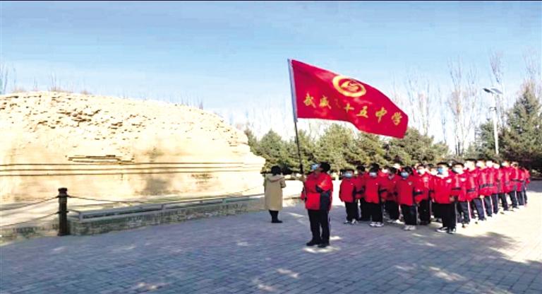 2019年8月,涼州會盟被編入教育部統(tǒng)編高一歷史教材,這是一件具有重大意義的事情,為全國中學(xué)生鑄牢中華民族共同體意識發(fā)揮了積極作用。為生動呈現(xiàn)統(tǒng)編教材中涼州會盟這一重大歷史事件,受央視華語環(huán)球節(jié)目中心《國家記憶》欄目組委托,武威市電視臺攝制組和武威十五中學(xué)師生50多人親臨涼州會盟紀念館,現(xiàn)場參與采訪拍攝現(xiàn)場教學(xué)的相關(guān)事宜。