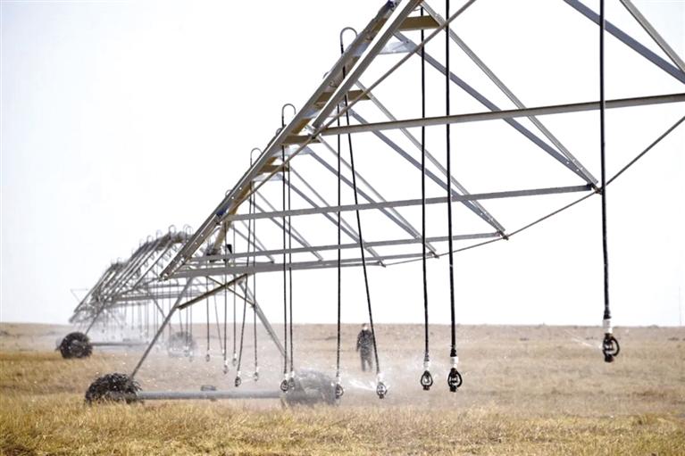 在農(nóng)投集團(tuán)現(xiàn)代牧草休閑示范園項(xiàng)目,平整一新的2.3萬畝土地上,3組大型噴灌設(shè)備已經(jīng)投入緊張的工作中,隨著工作人員啟動設(shè)備,噴灌機(jī)所過之處土地一片濕潤,空氣中充滿了泥土的清新。據(jù)現(xiàn)場負(fù)責(zé)人介紹,連續(xù)幾日,他們都在緊鑼密鼓開展春灌工作,利用大型噴灌設(shè)備,不僅實(shí)現(xiàn)了水資源的高效利用,而且減少了人力投入,工作效率更高。