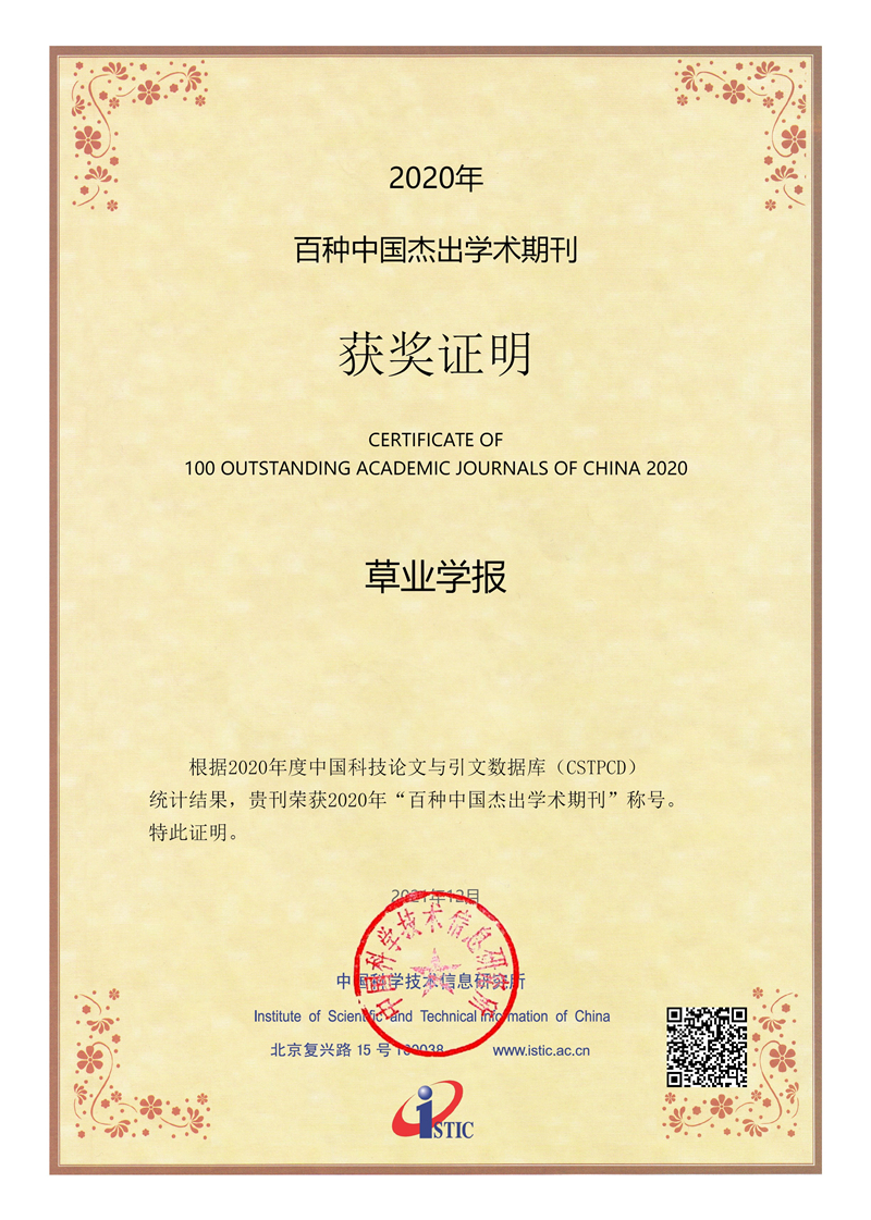12月29日,中國科學技術信息研究所發(fā)布《2022年中國科技論文統(tǒng)計報告》,并評選出“2021年度中國百種杰出學術期刊”,其中甘肅省2種,分別是:中國草原協(xié)會、蘭州大學草地農業(yè)科技學院主辦的《草業(yè)學報》,中科院寒旱所主辦的《高原氣象》。