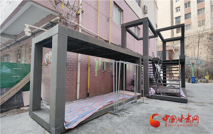 在甘肅省歌劇院辦公樓的西側,一組五米高的兩層鋼架結構赫然出現在記者眼前,這組“大家伙”前后制作了兩三個月時間,光是使用的角鋼就有一兩噸重,而舞臺上極具視覺沖擊力的“九宮格”截面圖,就是通過三組移動支架,儼然拼積木般進行位移組合來完成的。同時,通過位置的偏移,還將實現宿舍、工地、工棚以及生活場景的轉換。