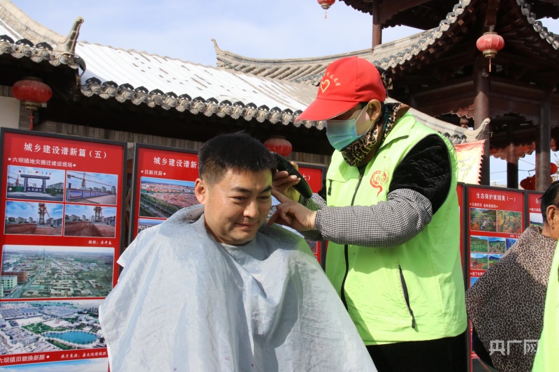 志愿者為群眾剃頭(央廣網(wǎng)發(fā) 趙玉梅 攝)